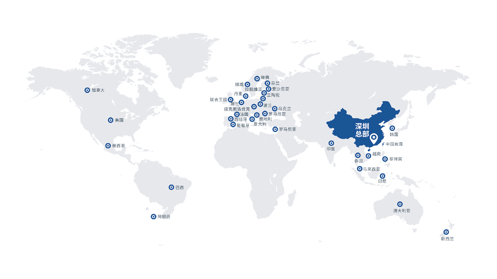 立足于國內(nèi)深圳、張家港、常州、天津、長沙、蘇州、濟(jì)南生產(chǎn)基地與備品備件庫,國內(nèi)外轄180+辦事處,在100多個國家和地區(qū)設(shè)立銷售服務(wù)機構(gòu),為全球用戶提供高品質(zhì)的產(chǎn)品與優(yōu)質(zhì)高效的服務(wù)。